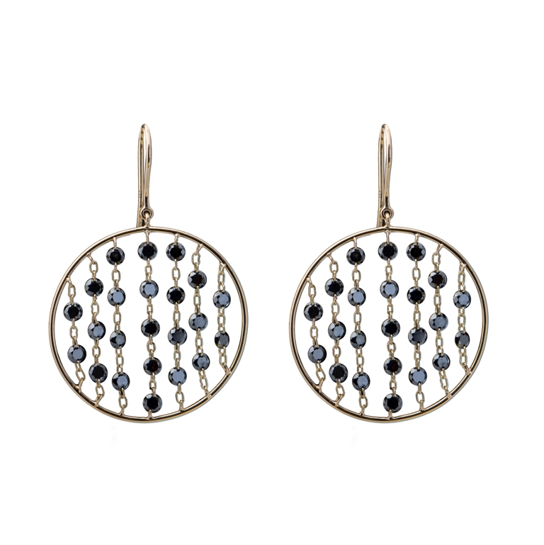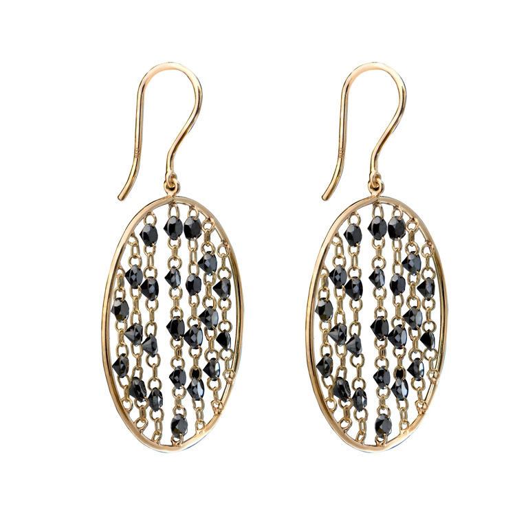 Fabulously catching the light in every graceful sway, this midnight diamond® hoops has seven rows of linked midnight diamonds® suspended inside a delicate gold hoop. Beautifully unique, just like you are!