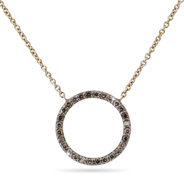 This Halo design coffee diamond® necklace that comes with a simplistic beauty set in 18K caramel gold®. Its charming elegance is here to adorn your neck.