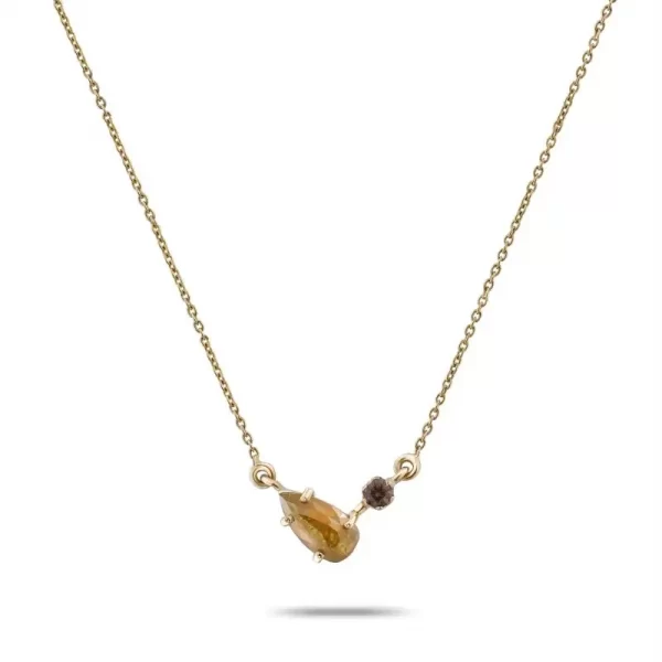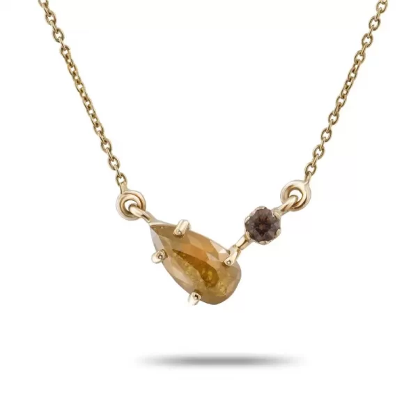 As you are a beautiful medley of fiery warmth and down to earth elegance, our master artisans present you this delightful necklace that tastefully combines a raindrop pattern natural yellow diamond and a petite coffee diamond®. Delicate and classy, this necklace is perfect for everyday style.