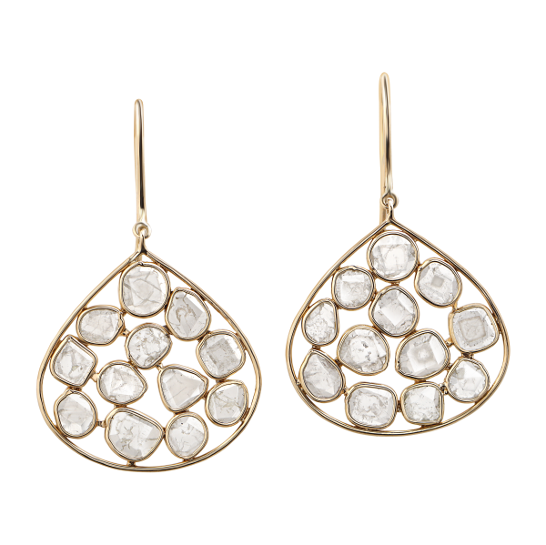 Rivalling the subtle glow of raindrops dancing in the wind, this beautiful pair of diet diamond® earrings gleam with natural diet diamonds® in honeycomb pattern set within a raindrop pattern gold frame. Lightweight and timeless, this pair is perfect for everyday wear.