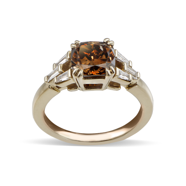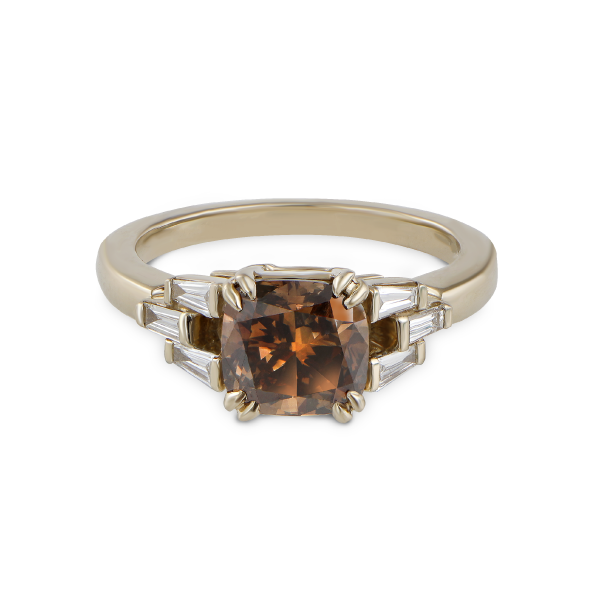 Stunning ring with a single cushion cut coffee diamond® set on caramel gold® base. It achieves a classy finish to readily beautify your fingers